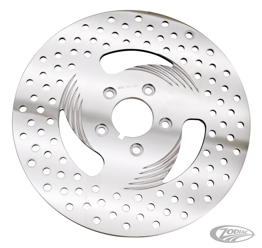 Passend für alle Ein- und Doppelscheiben vorne der Harley Modelle 1984-1999 Der Aussendurchmesser beträgt 11,5", der Innendurchmesser 2" und die Befestigungslöcher sind für 5/16" versenkte Linsenkopfschrauben (OEM 44136-84A), Edelstahl-Bremsscheibe rechts