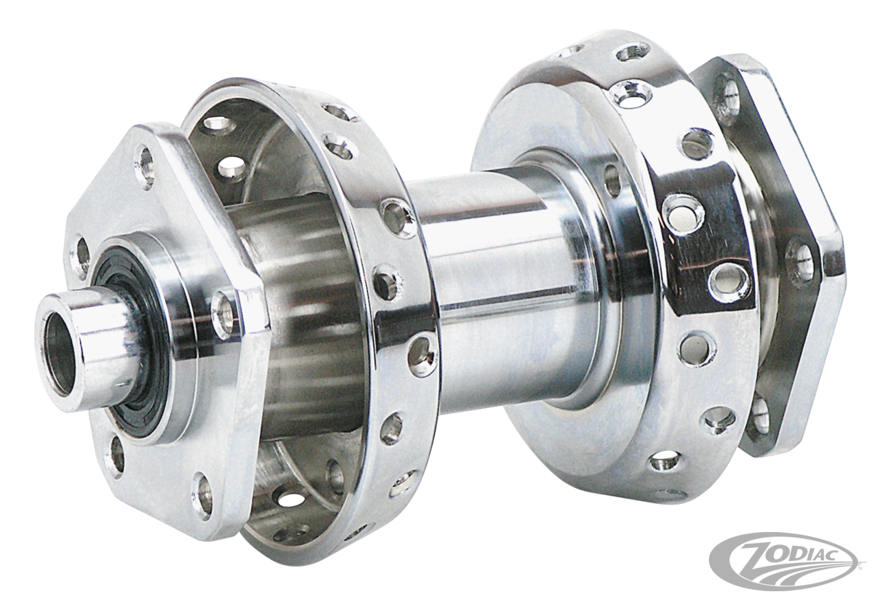 Eine große Auswahl an Standardnaben für die meisten Anwendungen. Sofern nicht anders angegeben, werden alle Radnaben mit eingebauten Lagern, Dichtungen und Lagerabstandshaltern geliefert. Räder für ABS-Anwendungen sind mit speziellen ABS-Lagern ausgestattet, nicht jedoch mit dem ABS-Sensor. Naben für Modelle bis 1999 verwenden Bremssccheiben und Riemenscheiben mit einem Innendurchmesser von 2 Zoll. Naben für Modelle ab 2000 verwenden Bremsscheiben und Riemenscheiben mit einem Innendurchmesser von 2,22" Zoll. Alle besitzen den standardmäßigen Harley 5-Lochkreis mit einem 3 1/4" (82,6mm) Kreisdurchmesser.
