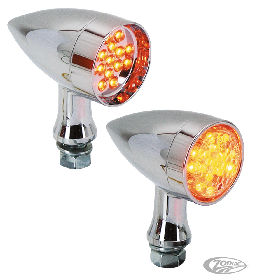 Hi-Glide Bullet Begrenzungsleuchten zeichnen sich durch 15 helle und gelbe LEDs aus. Sind 2 3/4" lang, 1 1/2" Durchmesser und besitzen 3/4" lange M10x1.25 Befestigungsbolzen. Die Gesamtbreite beträgt 2 3/8". Erhältlich mit gelbem oder Klarsicht-Glas. Ausführungen besitzen E-Prüfzeichen und werden einzeln und komplett vorverkabelt angeboten.