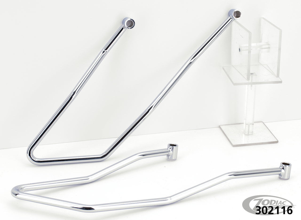 Ledersatteltaschen sind mehr als nur Zubehör. Für den Reisenden sind diese eine Notwendigkeit. Achten Sie darauf ihre Taschen nicht in Kontakt mit Stossdämpfern, Bremsen, Lackteilen oder Chrom kommen, da dies zu Schäden führen kann. Zodiac bietet verschiedene Satteltaschenbügel an: schnell zu entfernende "Zip-Off", "SlimLines" und "WideBodies". Allen werden in verchromter Ausführung geliefert.