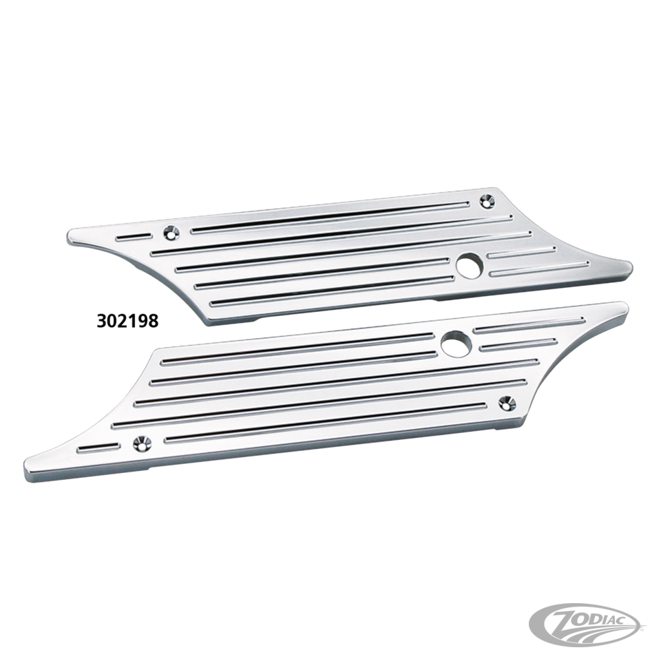Diese wunderschönen Abdeckungen für die Verschlüsse der Seitenkoffer sind aus 6061-T6er Billet-Alu CNC-gefertigt und besitzen ein Chromfinish oder sind schwarz-eloxiert mit blanken Einfräsungen. Sie ersetzen die originalen Abdeckungen und verleihen zudem noch einen neuen Look. Werden paarweise und komplett mit Montagematerial in Sets für links und rechsts angeboten.