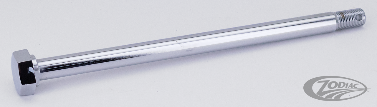 Die größte Auswahl an verchromten Radachsen, wird Ihnen von Zodiac geboten. Achsen für Modelle 1936 bis zu den aktuellen Modellen von heute sind erhältlich. Diese Achsen werden aus vergütetem Chromoly Stahl gefertigt, dreifach verchromt und zum Schluss (nach dem Verchromen) auf eine Toleranz von +/- .0005" geschliffen. Die Achsmutter wird auf der Achswelle durchdringungsverschweisst und vor dem Verchromen sorgfältig entgratet und scharfe Kanten glatt geschliffen. Bitte beachten Sie, dass bei neueren Modellen oft die gleiche OEM Nummer für die Radachse verwendet wird, unsere Kits jedoch die entsprechenden Achsspacer für die aufgelisteten Modelle beinhalten. Hinweis: Achsen ZPN 339147, 339193 & 339190 eignen sich ebenfalls für 2012-2016 FLD, 2008-2017 FXDF & 2007-2017 FXDWG wenn die mitgelieferten Spacer weg gelassen werden.