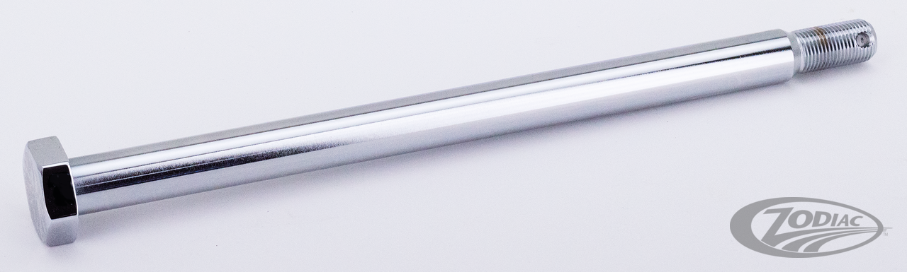 Die größte Auswahl an verchromten Radachsen, wird Ihnen von Zodiac geboten. Achsen für Modelle 1936 bis zu den aktuellen Modellen von heute sind erhältlich. Diese Achsen werden aus vergütetem Chromoly Stahl gefertigt, dreifach verchromt und zum Schluss (nach dem Verchromen) auf eine Toleranz von +/- .0005" geschliffen. Die Achsmutter wird auf der Achswelle durchdringungsverschweisst und vor dem Verchromen sorgfältig entgratet und scharfe Kanten glatt geschliffen. Bitte beachten Sie, dass bei neueren Modellen oft die gleiche OEM Nummer für die Radachse verwendet wird, unsere Kits jedoch die entsprechenden Achsspacer für die aufgelisteten Modelle beinhalten. Hinweis: Achsen ZPN 339147, 339193 & 339190 eignen sich ebenfalls für 2012-2016 FLD, 2008-2017 FXDF & 2007-2017 FXDWG wenn die mitgelieferten Spacer weg gelassen werden.