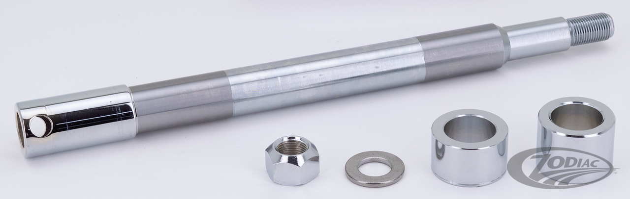Die größte Auswahl an verchromten Radachsen, wird Ihnen von Zodiac geboten. Achsen für Modelle 1936 bis zu den aktuellen Modellen von heute sind erhältlich. Diese Achsen werden aus vergütetem Chromoly Stahl gefertigt, dreifach verchromt und zum Schluss (nach dem Verchromen) auf eine Toleranz von +/- .0005" geschliffen. Die Achsmutter wird auf der Achswelle durchdringungsverschweisst und vor dem Verchromen sorgfältig entgratet und scharfe Kanten glatt geschliffen. Bitte beachten Sie, dass bei neueren Modellen oft die gleiche OEM Nummer für die Radachse verwendet wird, unsere Kits jedoch die entsprechenden Achsspacer für die aufgelisteten Modelle beinhalten. Hinweis: Achsen ZPN 339147, 339193 & 339190 eignen sich ebenfalls für 2012-2016 FLD, 2008-2017 FXDF & 2007-2017 FXDWG wenn die mitgelieferten Spacer weg gelassen werden.