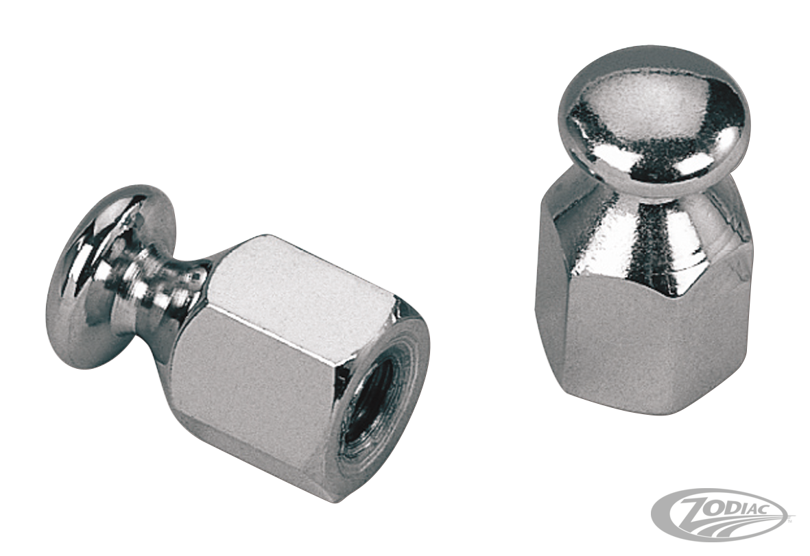 Aus hochwertigem Stahl hergestellt und anschliessend verchromt. Als Befestigungsknöpfe oder als Ersatz für Stossdämpfermuttern, Paar.