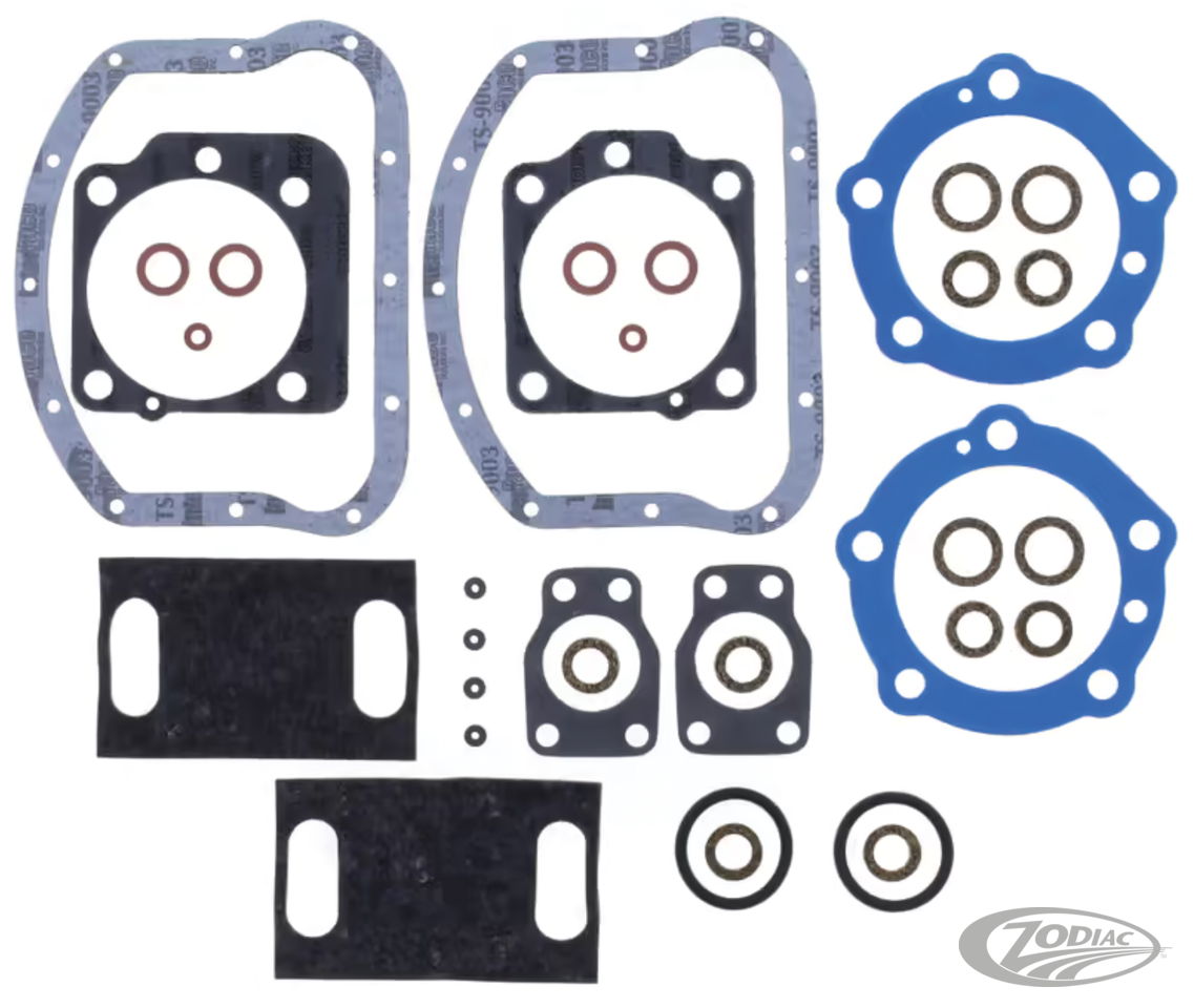 Spitzenqualitäts-Dichtungssätze von drei Herstellern. Von dem Amerikanischen Herstellern James und Cometic sowie vom europäischen Dichtungshersteller Athena. Alle verwenden Spitzenmaterial zur Herstellung ihrer Produkte, jeder einzelne fügt jedoch noch die eine oder andere Spezialität in der Fertigung seinem Produkt hinzu. Jeder dieser Sätze entspricht und übertrifft sogar den Herstellervorgaben. Zur Verfügung stehen: Komplettsätze, Motordichtring-Sätze und Stösselstangenrohr-Sätze für die meisten Modelle ab 1937. Alle Dichtungen, Dichtringe und O-Ringe werden auch einzeln an anderer Stelle in diesem Kapitel aufgeführt. Hinweis: Athena Dichtsätze beinhalten keine Ventilschaftdichtungen. Hinweis: Diese Dichtungen sind nicht für komplette S&S Motoren zu verwenden. Diese sind separat aufgelistet.