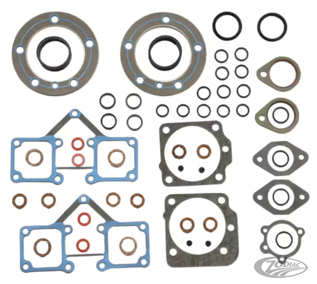 Spitzenqualitäts-Dichtungssätze von drei Herstellern. Von dem Amerikanischen Herstellern James und Cometic sowie vom europäischen Dichtungshersteller Athena. Alle verwenden Spitzenmaterial zur Herstellung ihrer Produkte, jeder einzelne fügt jedoch noch die eine oder andere Spezialität in der Fertigung seinem Produkt hinzu. Jeder dieser Sätze entspricht und übertrifft sogar den Herstellervorgaben. Zur Verfügung stehen: Komplettsätze, Motordichtring-Sätze und Stösselstangenrohr-Sätze für die meisten Modelle ab 1937. Alle Dichtungen, Dichtringe und O-Ringe werden auch einzeln an anderer Stelle in diesem Kapitel aufgeführt. Hinweis: Athena Dichtsätze beinhalten keine Ventilschaftdichtungen. Hinweis: Diese Dichtungen sind nicht für komplette S&S Motoren zu verwenden. Diese sind separat aufgelistet.