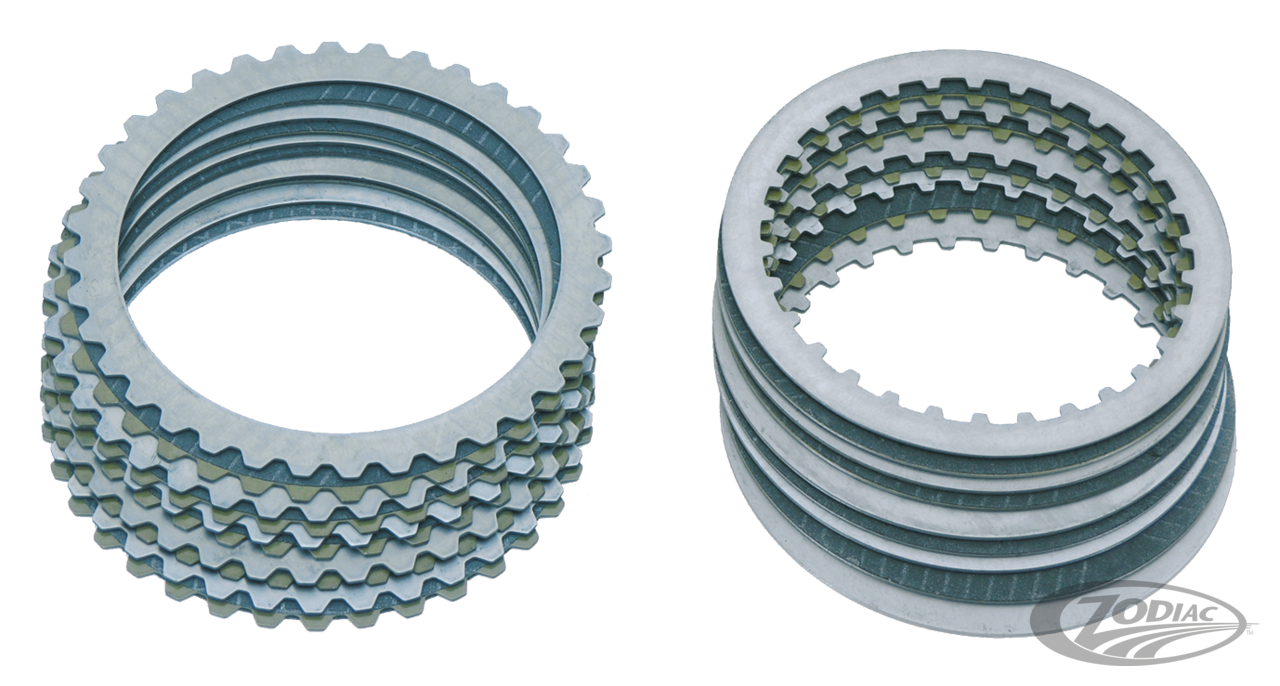 Für Big Twin 1990-1997, XL Sportster 1991-2004 und Buell 1991-2002, Komplettes Kupplungspaket, enthält 10 außen verzahnte einseitig beschichtete Carbonit-Reibscheiben, 10 innen verzahnte einseitige Carbonit-Reibscheiben sowie 1 doppelseitig beschichtete Carbonit-Reibscheibe