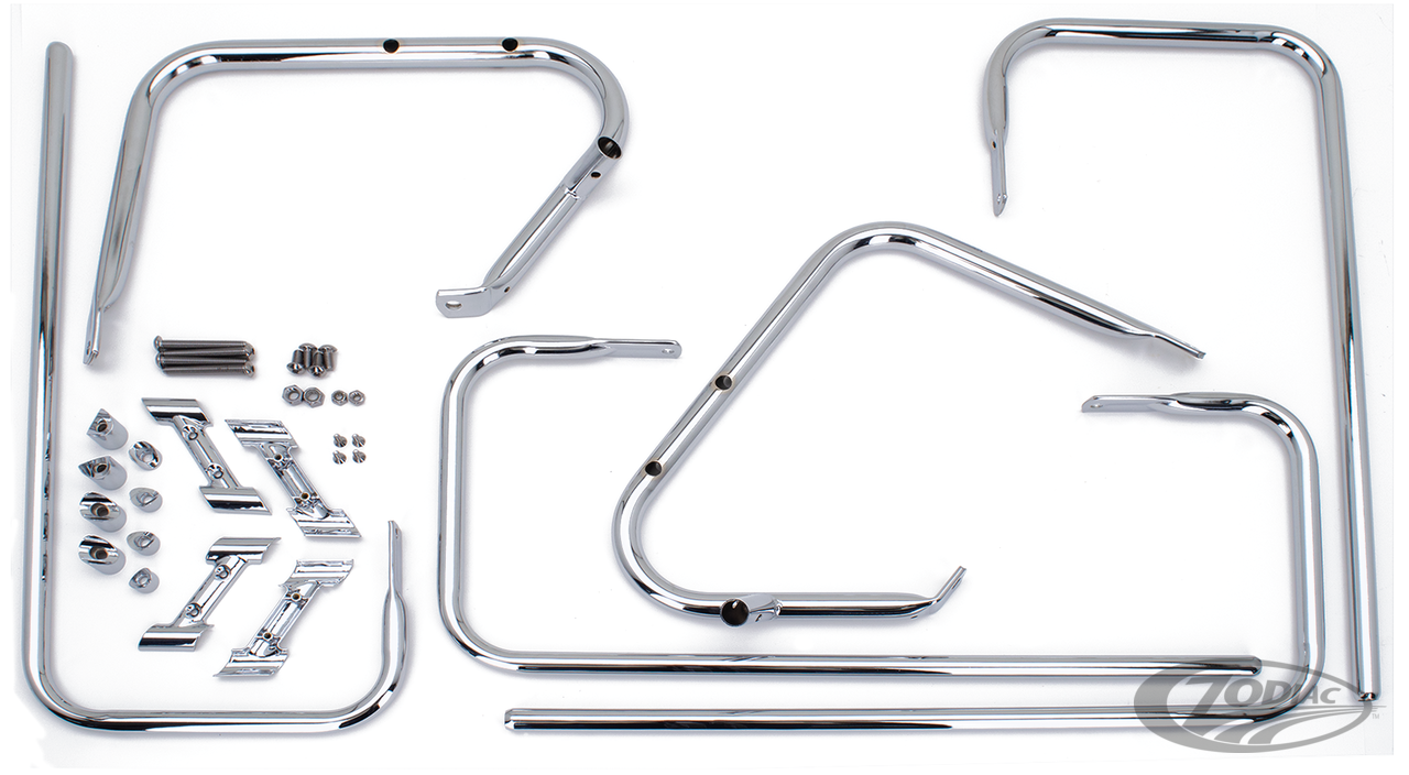 Für Electra Glide 1997-2008 und Road Glide 1998-2003, Set mit linken und rechten horizontalen Seitenbügeln und Vorderkantenschutz, verchromt (OEM 91216-97)