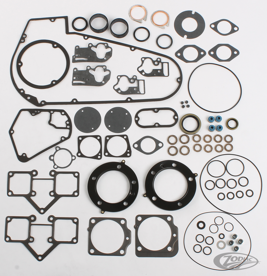 Spitzenqualitäts-Dichtungssätze von drei Herstellern. Von dem Amerikanischen Herstellern James und Cometic sowie vom europäischen Dichtungshersteller Athena. Alle verwenden Spitzenmaterial zur Herstellung ihrer Produkte, jeder einzelne fügt jedoch noch die eine oder andere Spezialität in der Fertigung seinem Produkt hinzu. Jeder dieser Sätze entspricht und übertrifft sogar den Herstellervorgaben. Zur Verfügung stehen: Komplettsätze, Motordichtring-Sätze und Stösselstangenrohr-Sätze für die meisten Modelle ab 1937. Alle Dichtungen, Dichtringe und O-Ringe werden auch einzeln an anderer Stelle in diesem Kapitel aufgeführt. Hinweis: Athena Dichtsätze beinhalten keine Ventilschaftdichtungen. Hinweis: Diese Dichtungen sind nicht für komplette S&S Motoren zu verwenden. Diese sind separat aufgelistet.