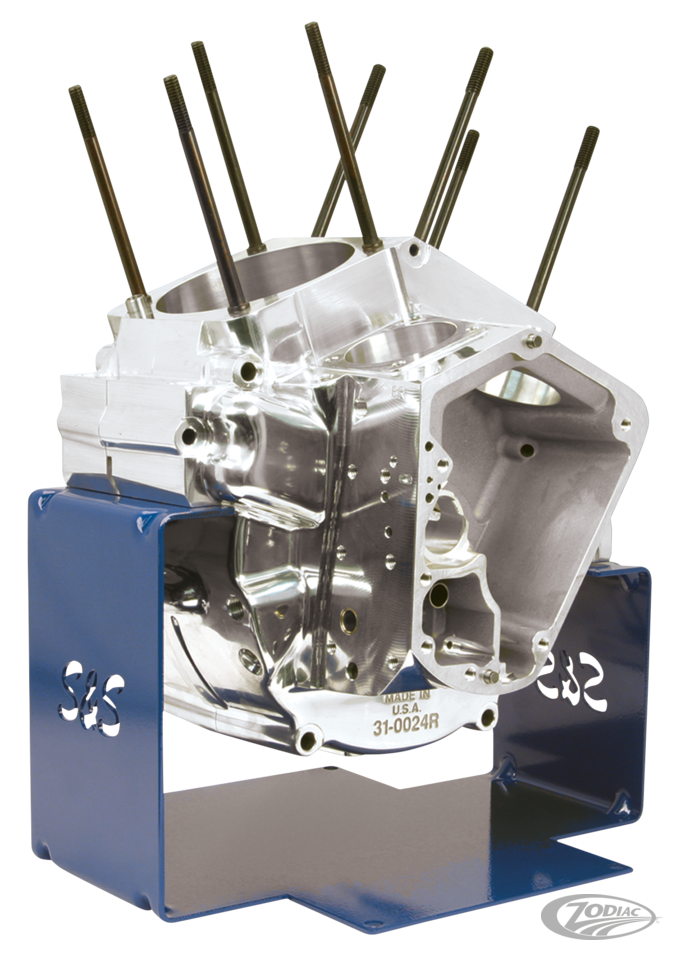 Diese kunststoff beschichteten Motorständer aus stabilem Stahlblech besitzen ausgelaserte S&S Logos. Erhältlich für OEM Motoren und entsprechende Zubehör Motoren sowie Motorgehäuse ab 1936.
