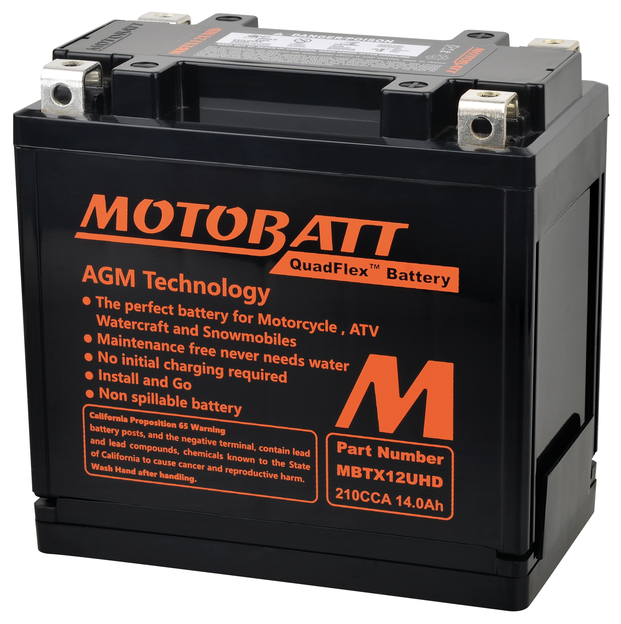 Motobatt Quadflex Bieten die optimale Balance Zwischen AH (Amperestunden) und CCA (Kaltstartampere bei -18C). Dies wird durch die Vergrößerung der inneren Platten erreicht , in dem der ungenutzte Raum, wie in Batterien anderer Hersteller, genutzt wird. Ermöglich wird dies durch das weltweit patentierte innovative Zellverbindungssystem. Zusätzlich wurden die Gitterdicke, die Dichte der Paste sowie das Gewicht (der Inhalt) des aktiven Materials verbessert um die Kapazität bei der Gehäusegröße zu maximieren. Revolutionär auf dem Batteriemarkt. Alle Motobatt Quadflex Batterien haben eine 24 monatige Garantie. Einzigartige Vorteile Leistung Dank des exklusiven Designs bis zu 30% mehr Kapazität und Leistung als vergleichbare AGM Batterien anderer Hersteller Sicher Kein Nachfüllen erforderlich Durable Dank der neuesten Technologie extrem wiederstandsfähig gegen Vibrationen oder einem Bruch des Gehäuseses Wartungsfrei Free Vollständig versiegelt und werksseitig aktiviert, keine Wartung erforderlich, ausser das Laden wärend der Lagerung. Einsatzbereit Mit einer Spannung von über 12,5V ist die Batterie sofort einsatzbereit Improved 4 fest montierte Batteriepolanschlüsse mit Gewindeeinsätzen, in den Ecken der Batterieoberseite, ermöglichen die Verwendung als Top A oder Top B Anwendung.