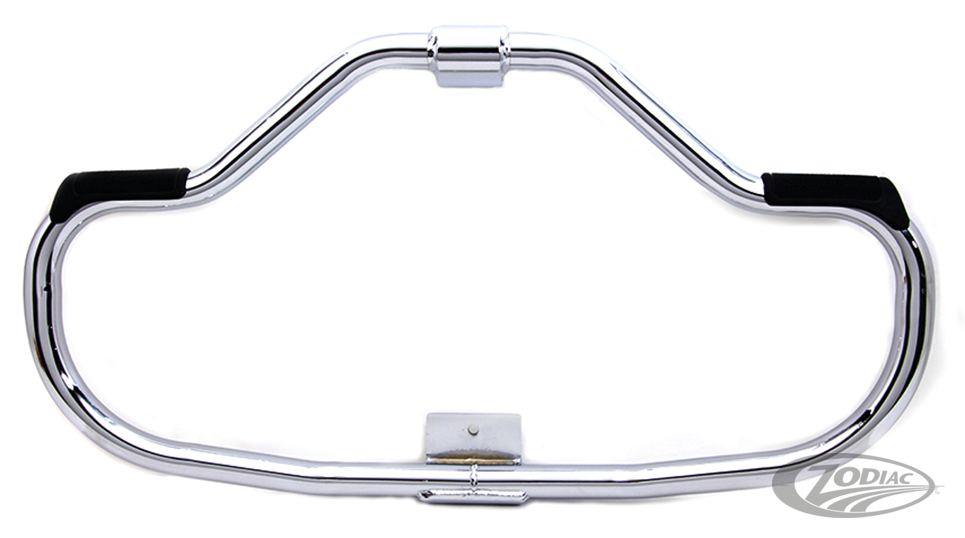 Diese verchromten oder schwartz beschigtigte Highway Bars aus dickwandigem 1 1/4" (32mm) Rohr werden auf einer Ziehdornbiege maschine gebogen und besitzen zudem Fussrastengummis.
