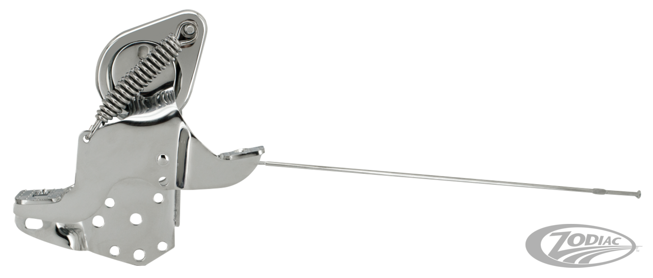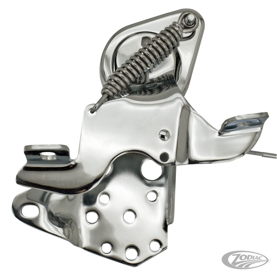 Inklusive Halterung mit installierten Buchsen, Pedal, Federabdeckung und allen Reibkomponenten. Die Kupplungszugstange wird an dem Umlenkhebel angelenkt. Hierdurch entsteht ein Versatz der die Verwendung mit einem Aluminium Primärkasten ermöglicht. Kann an allen Big Twin 1936-1978 und Softail 1987-1999 installiert werden, wenn die passende Kupplungsstange, Stangenende und Schraube oder Halterung & Zugsatz separat bestellt wird. Zu installieren mit ZPN 781129 an FL 1965-1978. Für alle Anwendungen 1965-1999 ist auch einen Alu-Spacerblock ZPN 781127 separat zu erhältlich.