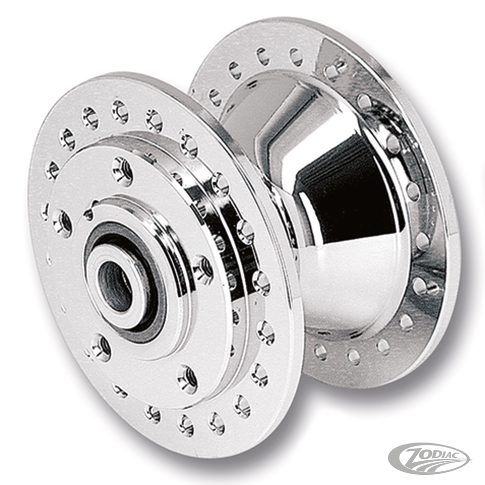 Vorderradnaben für Sportster, Sportster 2000-2007 mit Doppelscheibe. Verchromte Alunabe , V-Twin Mfg. (OEM 43619-00A)