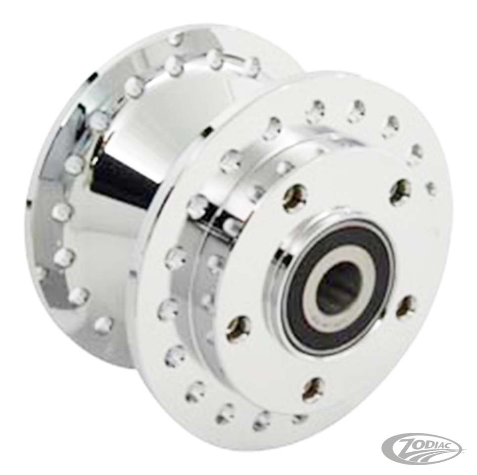 Eine große Auswahl an Standardnaben für die meisten Anwendungen. Sofern nicht anders angegeben, werden alle Radnaben mit eingebauten Lagern, Dichtungen und Lagerabstandshaltern geliefert. Räder für ABS-Anwendungen sind mit speziellen ABS-Lagern ausgestattet, nicht jedoch mit dem ABS-Sensor. Naben für Modelle bis 1999 verwenden Bremssccheiben und Riemenscheiben mit einem Innendurchmesser von 2 Zoll. Naben für Modelle ab 2000 verwenden Bremsscheiben und Riemenscheiben mit einem Innendurchmesser von 2,22" Zoll. Alle besitzen den standardmäßigen Harley 5-Lochkreis mit einem 3 1/4" (82,6mm) Kreisdurchmesser.