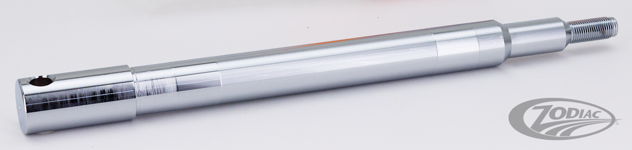 Die größte Auswahl an verchromten Radachsen, wird Ihnen von Zodiac geboten. Achsen für Modelle 1936 bis zu den aktuellen Modellen von heute sind erhältlich. Diese Achsen werden aus vergütetem Chromoly Stahl gefertigt, dreifach verchromt und zum Schluss (nach dem Verchromen) auf eine Toleranz von +/- .0005" geschliffen. Die Achsmutter wird auf der Achswelle durchdringungsverschweisst und vor dem Verchromen sorgfältig entgratet und scharfe Kanten glatt geschliffen. Bitte beachten Sie, dass bei neueren Modellen oft die gleiche OEM Nummer für die Radachse verwendet wird, unsere Kits jedoch die entsprechenden Achsspacer für die aufgelisteten Modelle beinhalten. Hinweis: Achsen ZPN 339147, 339193 & 339190 eignen sich ebenfalls für 2012-2016 FLD, 2008-2017 FXDF & 2007-2017 FXDWG wenn die mitgelieferten Spacer weg gelassen werden.