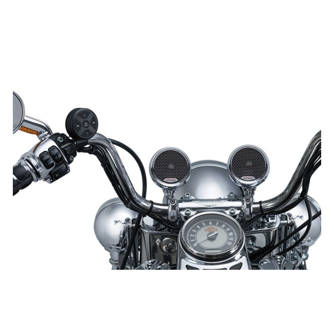 Kuryakyn, Road thunder speaker pods kitChrome; Incl. handlebar mounted speakers and bluetooth controller; Fits 7/8" & 1" handlebars; 100W peak
