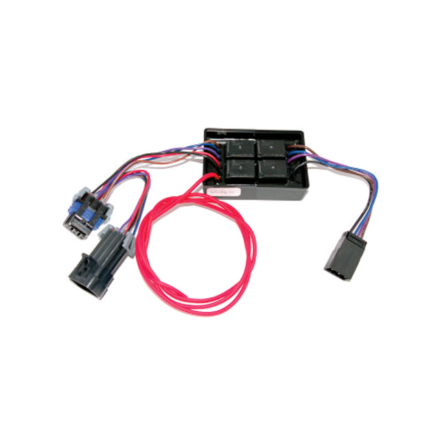 Wiring harness for connecting a trailer to the bike. These trailer isolator wiring harnesses isolates the electronics for the trailer from the motorcycle. The trailer isolator wiring comes with relays; which are triggered by the bike. But actual current is drawn directly from the battery so there is no current draw to interfere with the bike´s electrical system. The 4-wire isolator harness comes with a molded flat 4-pin connector; left/brake; right/brake; run & ground.