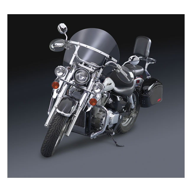 Chrome Lower Deflectors attach to the motorcycle using the SwitchBlade® or Heavy Duty™ Mount Kit for a clean appearance on the forks. They improve the performance of your windshield by preventing unwanted turbulance around your waist and unwanted updrafts on your back. These lowers can be used together with a SwitchBlade®; Heavy Duty™ or Dakota 4.5™ windshield and a National Cycle spotlight bar for an integrated front end appearance.