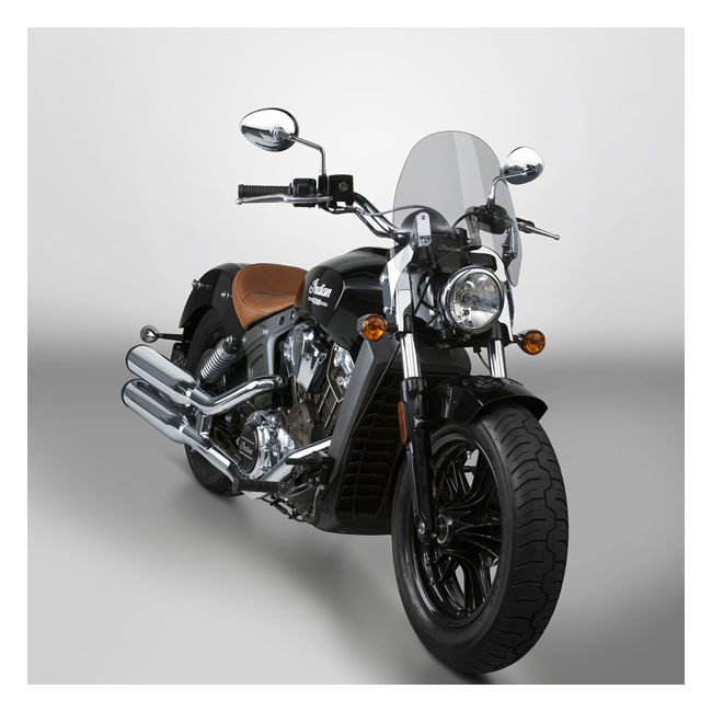 Designed for maximum attitude; the minimal profile of the SwitchBlade® Deflector™ is a stylish addition to your Scout. National Cycle’s RakeAdjust feature allows you to quickly and easily change the screen angle; transforming the SwitchBlade® Deflector™ from a boulevard cruiser to a functional bug buster – or anywhere in between. - Quantum® hardcoated Lexan polycarbonate 4mm thick - 38% light tint - Model specific mount kit required; this is seperately available - Overall Height: 14.25" (36.2cm) - Headlight Cutout to Top of Screen: 12.00" (30.5cm) - Width Across Back at Widest Point: 14.00" (35.5cm)
