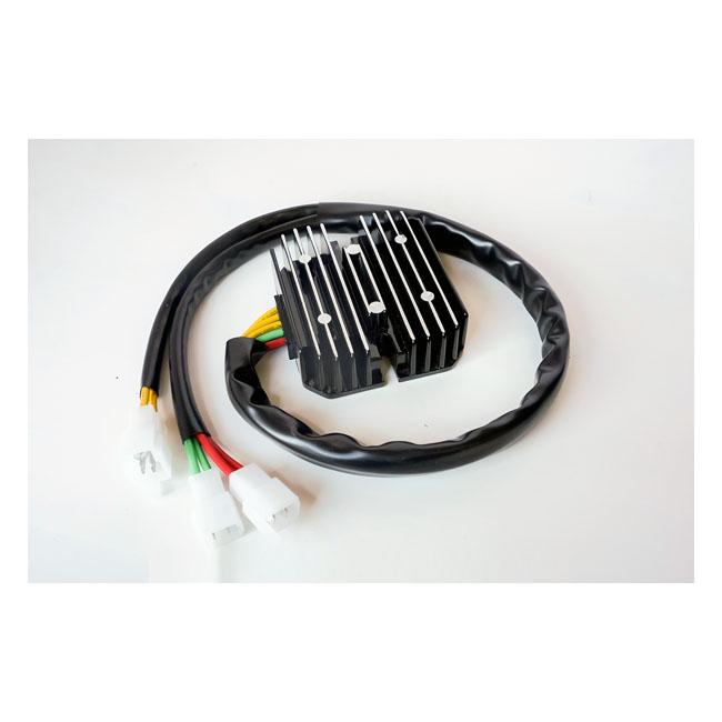 Rick's Motorsport Electrics offers this Lithium Ion compatible rectifier-regulator that is designed with a lower voltage set point to work with lithium ion batteries. This is a plug-n-play piece for Honda street bike models with OE#'s: 31600-MAA-A01; 31600-MAA-000; 31600-MAH-008; 31600-MCK-A01; 31600-MCK-A51.