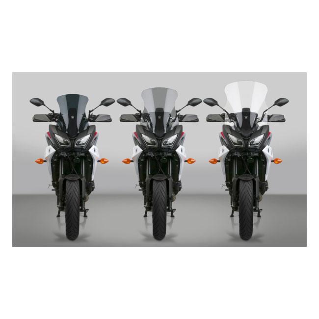 The "V" shape and advanced dimensional contours push the wind vortex away from the rider's head; resulting in a more; quiet riding environment. Polycarbonate is used for outstanding optics and impact strength 23X better than acrylic. After that Quantum® hardcoat is added for scratch resistance 10X better than FMR coating and 30X better than acrylic replacement screens. Center screen height: 21.00" (53.3cm)/ Width: 14.75" (37.4cm) Light gray 26% tint