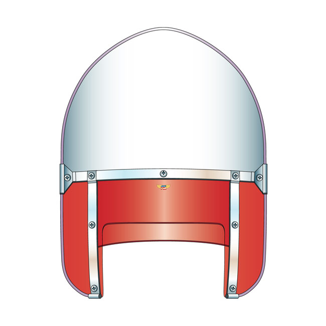 With clear early style 'peaked 49-59 style'' top window and red lower panel & red adjustable window. Top of the line authentic early style 3-piece windshield assembly in a 5-bolt pattern; with beaded edges. Combines classic styling with superior optics; scratch-resistance; durability and should not be mistaken with import products. National Cycle's windshield is manufactured from FRM hard coated clear Lexan® polycarbonate which is the highest quality motorcycle windscreen material available. Headlight cut-out to top of screen: 19.50-21.25" (49.5-54.0cm). Width across back at widest point: 22.5" (57cm). For mounting kit see: 513662. For replacement top window see: 500044. For replacement/optional 5 bolt lower window see: 513691 Clear. 513694 Black. 513692 Red. 513693 Blue. For replacement/optional adjustable lower window see: 569876 Clear. 569879 Black. 569877 Red. 569878 Blue.