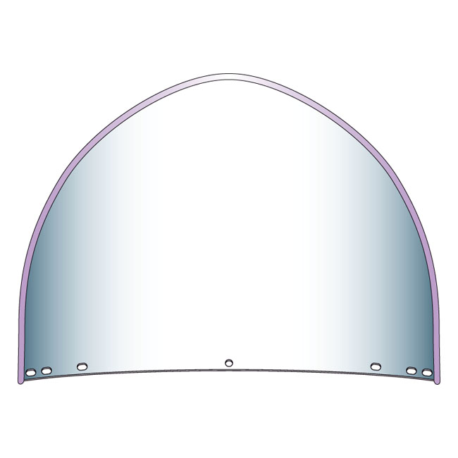 Clear. Replacement top windshield window for all OEM 7-bolt pattern 3-piece windshields. This is the 1949-1959 early 'peaked' (pointed) style top window for a classic look. Will replace all late model 'round top' top windows. This windshield is manufactured from FRM hard coated clear Lexan® polycarbonate which is the highest quality motorcycle windscreen material available. Overall Screen Height: 15.38" (39.0cm)/ Top of Center Mount Hole to Top of Screen: 14.88" (37.7cm)/ Width: 22.25" (56.6cm). Note: Not compatible with National Cycle 5-bolt pattern windshields.