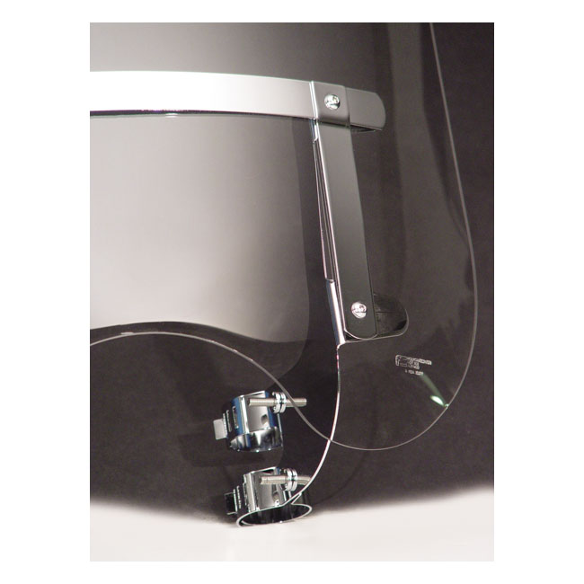 Can be used with 516536 light bar; which is optionally available. A custom look for XL Sportsters and other models with narrow glide forks. High Impact Acrylic. Includes variable fork mounting hardware. Dimensions: 20.5" (52cm) high x 18.3" (46.5cm) wide