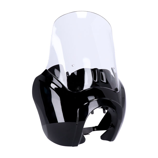 Headlamp fairing. Gloss black. Clear windshield