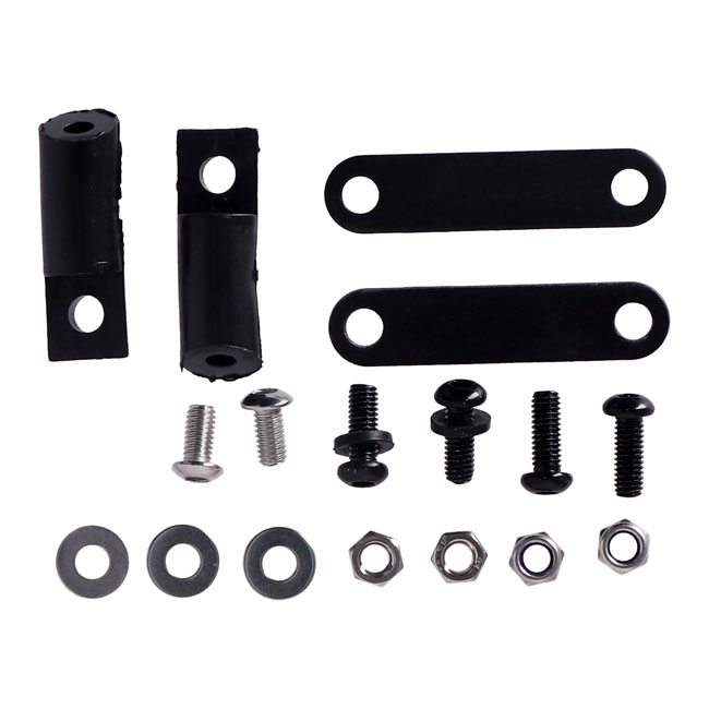 Clear 15" windshield. Gloss black painted ABS construction. Installs to the bottom triple tree with the riser bolts and the bottom mount headlamp. Includes brackets and hardware for installation.
