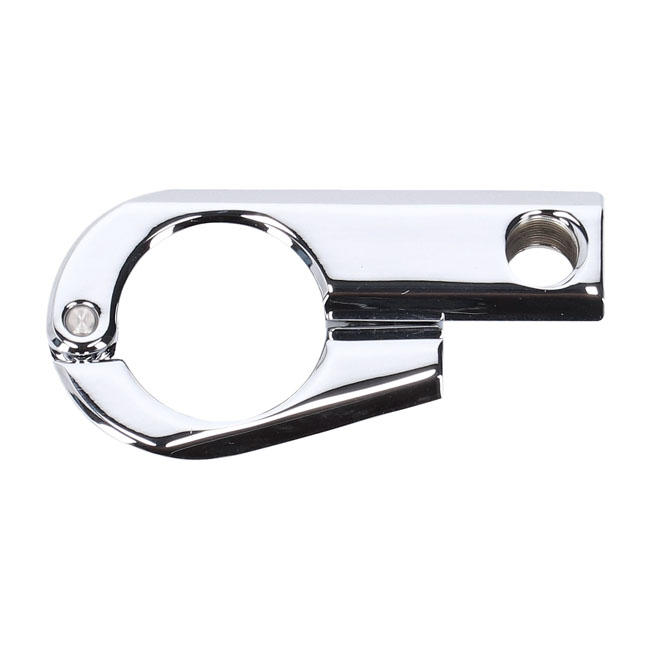 Universal chrome plated aluminum bracket that allows installation of a speedometer or other instrument; navigation device; cup holder; auxiliary light or just about anything else to a handlebar or similar round tubing. Bracket clamps with a fold-open hinge system so installation is simple; quick and does not require removing or disassembling any other components.