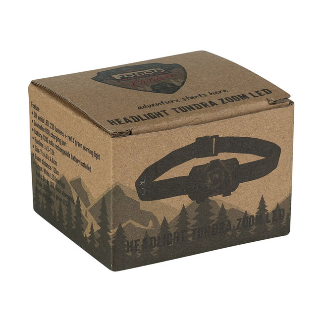 Headlamp with various functions. Equipped with an elastic headband which is adjustable in size. Features a rechargeable battery; and multiple lighting functions. Ideal for outdoor activities such as camping; bushcraft; hiking; etc. The LED is zoomable. Runtime