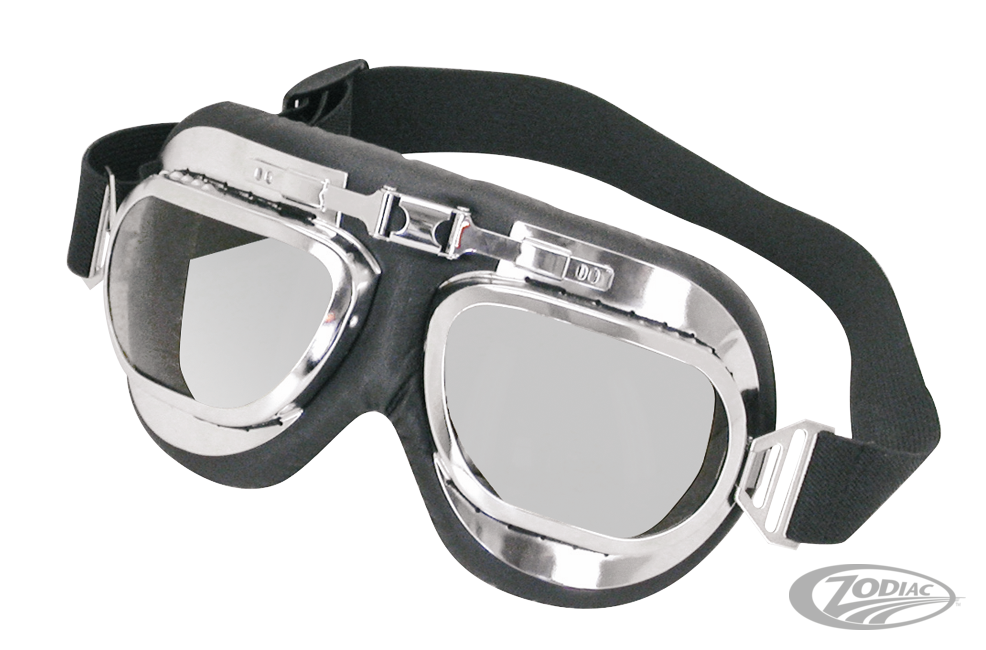 Diese im klassischen Styling gehaltenen Brillen sind wahlweise mit verchromtem oder schwarzem Rahmen erhältlich. Die bruchsicheren und getönten Polycarbonat Gläser besitzen eine 400er UV Filterwirkung für maximalen Schutz der Augen. Das Kopfband ist verstellbar von XL bis XS.
