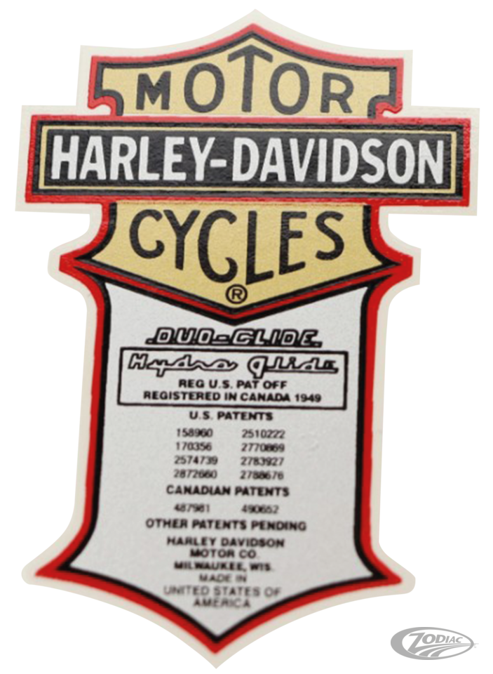 Abziehbild, "Patent", 1958-1964 Style Duo Glide/Hydra GlideTextauszug aus dem Katalog: