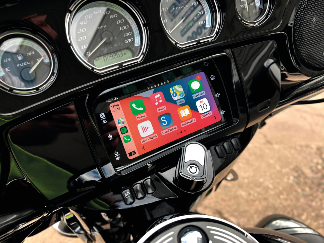 Plug-n-Play Soundstream Reserve Motorrad-Audio von Precision Power sind Upgrade Headunits für OEM Harley-Davidson Radios. Abgesehen vom normalen AM/FM-Radio können Sie mit diesen Geräten die Dinge tun, die Sie mit Ihrem Apple- oder Android-Telefon während der Fahrt über die integrierte Bluetooth-Verbindung machen. Steckdose für V-1 Systeme oder drahtlose Verbindung für V-2 Systeme, so können Sie Wegbeschreibungen abrufen, Nachrichten senden und empfangen, telefonieren und Musik hören/durchsuchen, und das alles so, dass Sie sich auf die Fahrt konzentrieren können. Sie können sogar Siri auf Ihrem Apple-Telefon oder den Google Assistant auf Ihrem Android-Telefon verwenden, um unterwegs Tankstellen zu finden. Sie können alles auf dem Touchscreen-Display Ihres Radios sehen, sodass Sie mehr darüber wissen, was in der Nähe ist. Die Apps selbst wurden für eine einfachere Anzeige neu gestaltet, sodass Sie sie verwenden können, während Ihre Augen und Hände dort bleiben, wo sie hingehören. Die Haupteinheiten verfügen über einen kapazitiven High-Definition-Touchscreen, 7" (17,8cm) mit anpassbarem Hintergrundbild/Hintergrund. Equalizer, MP3/WMA/AAC/FLAC-Audiowiedergabe über USB (max. 64GB), 50W pro Kanal, stabiler 2 Ohm 4-Kanal Verstärker und 4V-Cinch Vorverstärkerausgänge, UV-Schutz und schutzbeschichtete Schaltkreise bei der Verwendung der serienmäßigen Befestigungsteile.