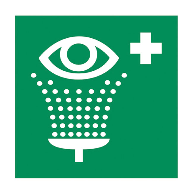 GM eyewash sticker, green cross
