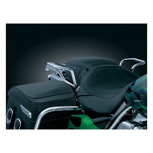 Universal and secure fit to all stock 1/2"; 5/8" or 3/4" tubing / passenger grab rails of H-D® Touring models. Includes basket and chrome holder.