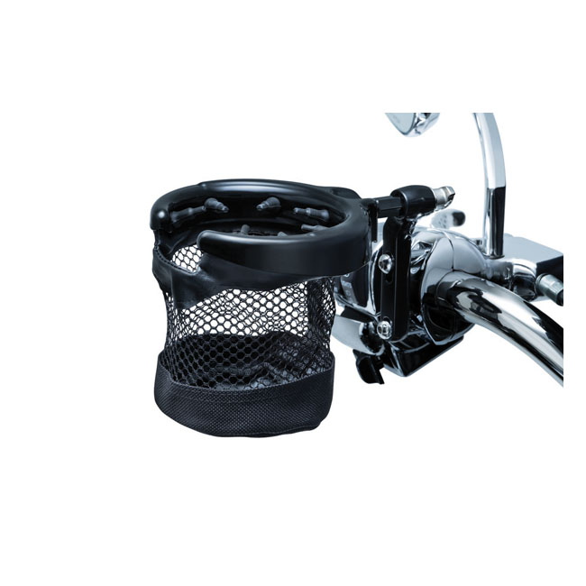 Kuryakyn, Drink holder with mesh basketGloss black; clutch/brake clamp mount; mesh basket