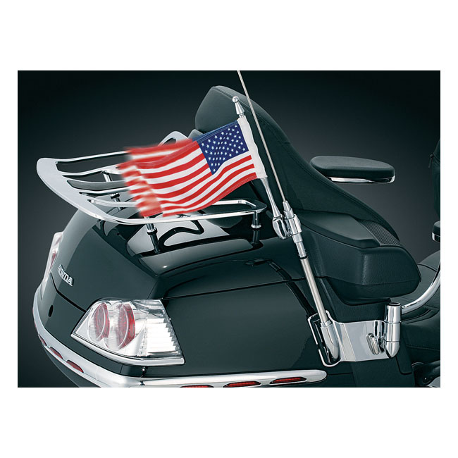 Kuryakyn, Antenna flag mount with us flag, chromeAluminum construction. US flag that mounts to the base of the antenna. Dimension of the flag is approx. 4" (10.2cm) x 9" (22.7cm). Total height approx. 12" (30.5cm).