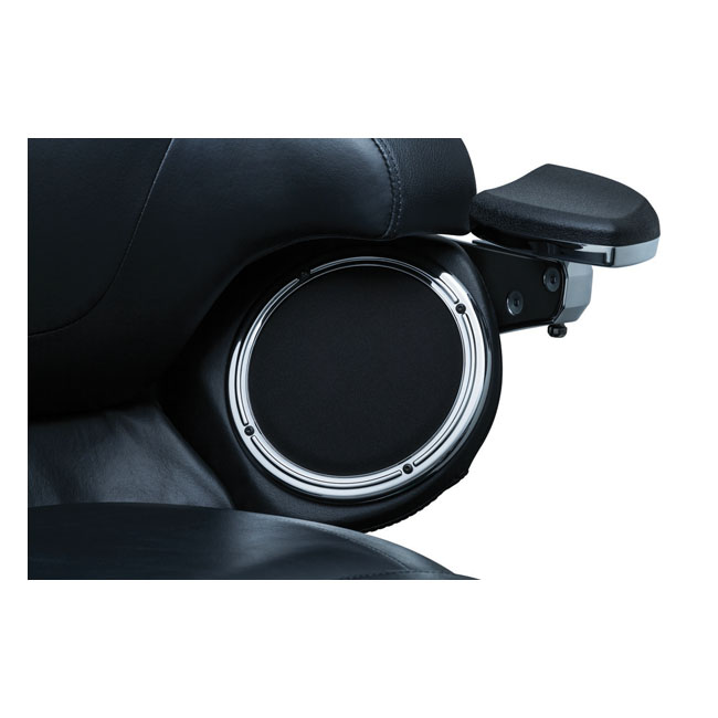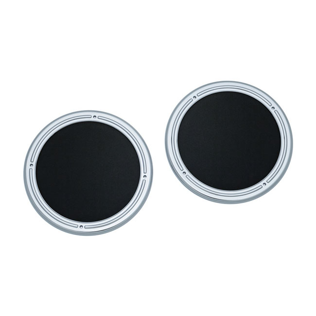 Kuryakyn, Rear speaker accents. ChromeAllows installation of fairing speaker grills 917183 Zombie; 917184 Corona and 917186 Flame. Can also be used as-is to just replace the stock black speaker rings and mesh grills.