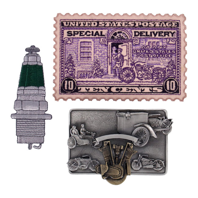 V-Twin Mfg, JD Racer gift setIncludes a motor model; belt buckle; and patches that 48-1373can be ironed or sewn onMotor model measurements: Length= 3-3/4'' Width= 3-3/4'' Height= 3-9/16''Overall height= 4-3/8''
