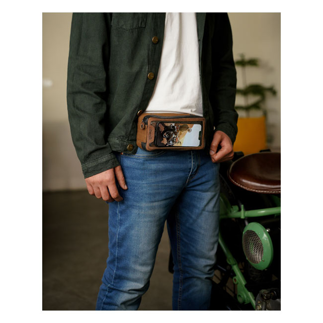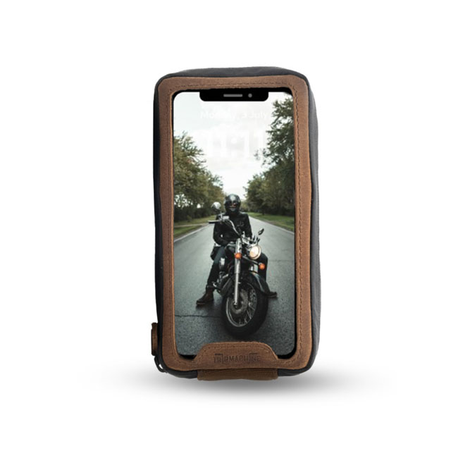 This hand made Navigator bag will allow you to use your phone for navigation; the screen is touch screen friendly and it comes with a waterproof YKK zipper and 6 super strong magnets that will not let go during riding. The navigator bag is also multi-purpouse since it is extra (7.5cm) deep which allows it to hold additional essentials as keys; ear phones; wallet or credit cards etc.; either on-bike or off-bike. When off-bike it can be worn as a fanny pack or carried on your belt. The heavy duty canvas is luxureous amalgamated with signature leather. Approx. dimensions: 22cm high x 12.5cm wide x 7.5cm deep. Fits phones with dimensions up to 160mm x 85mm.