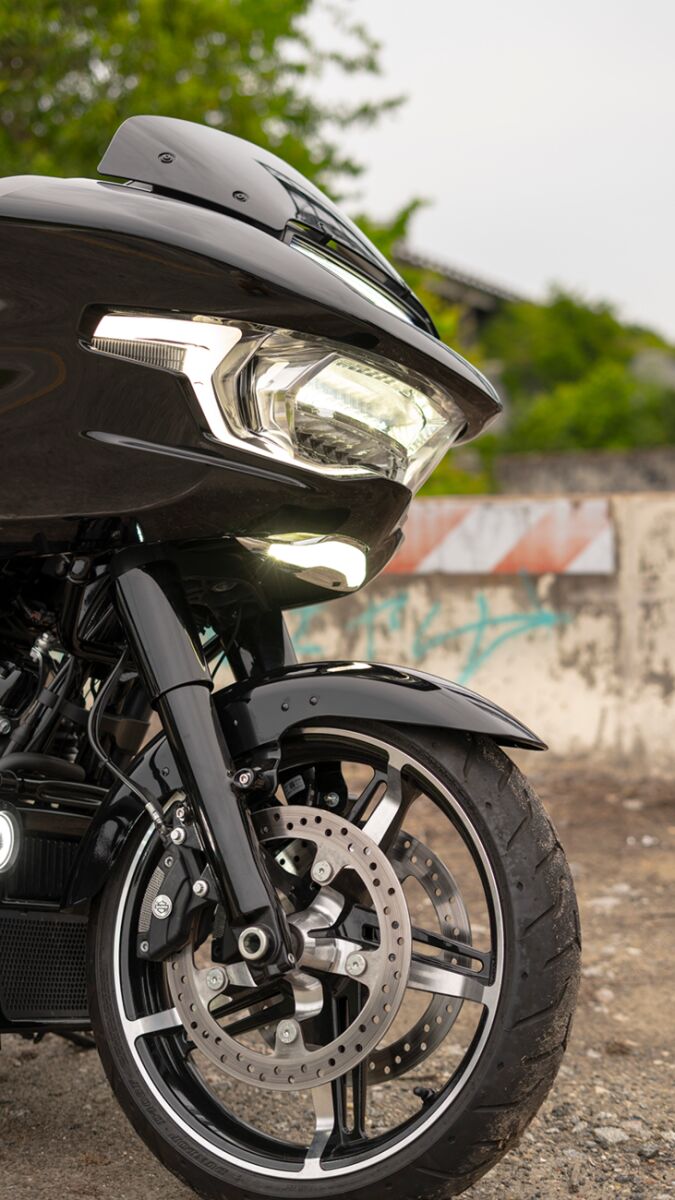 - Helle weiße LEDs und gelbe Blinker sorgen für zusätzliche Sichtbarkeit bei Dunkelheit.