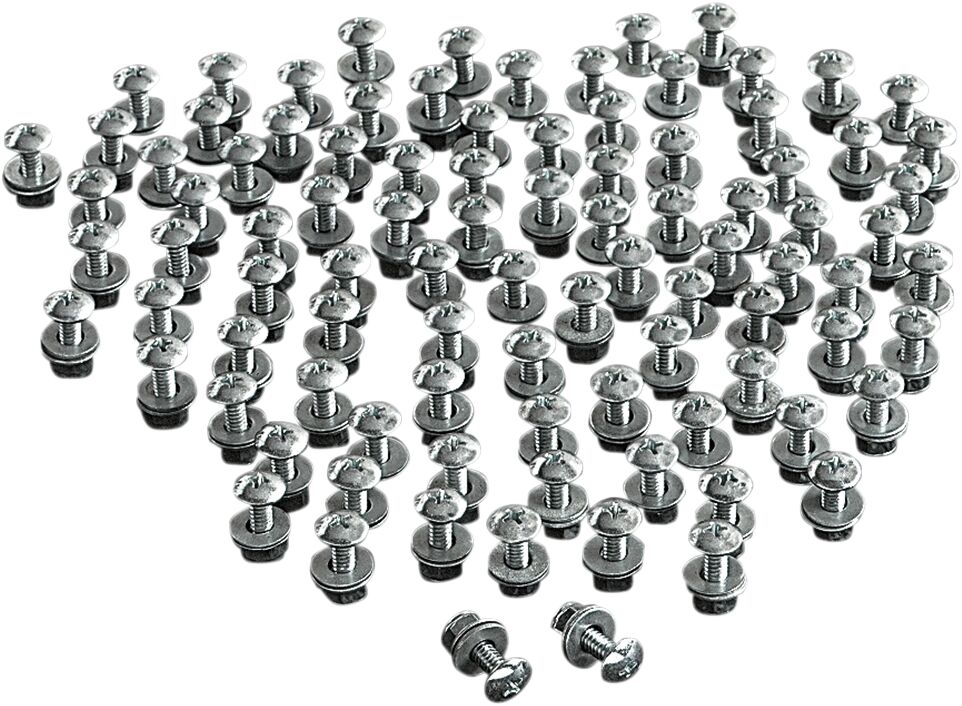 Kennzeichenschrauben- Kennzeichenschraubenset komplett mit einer Phillips-Schraube, zwei Unterlegscheiben und einer Sechskant-Sicherungsmutter.- Gewindegröße der Schraube ist 10-24 x 5/8 L"