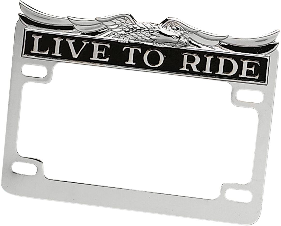 Live To Ride" Kennzeichenrahmen- Mit Adler-Deko oben.- Abmessungen gemessen an Montagelöchern: 152 mm (6") x 70 mm (2-3/4")"