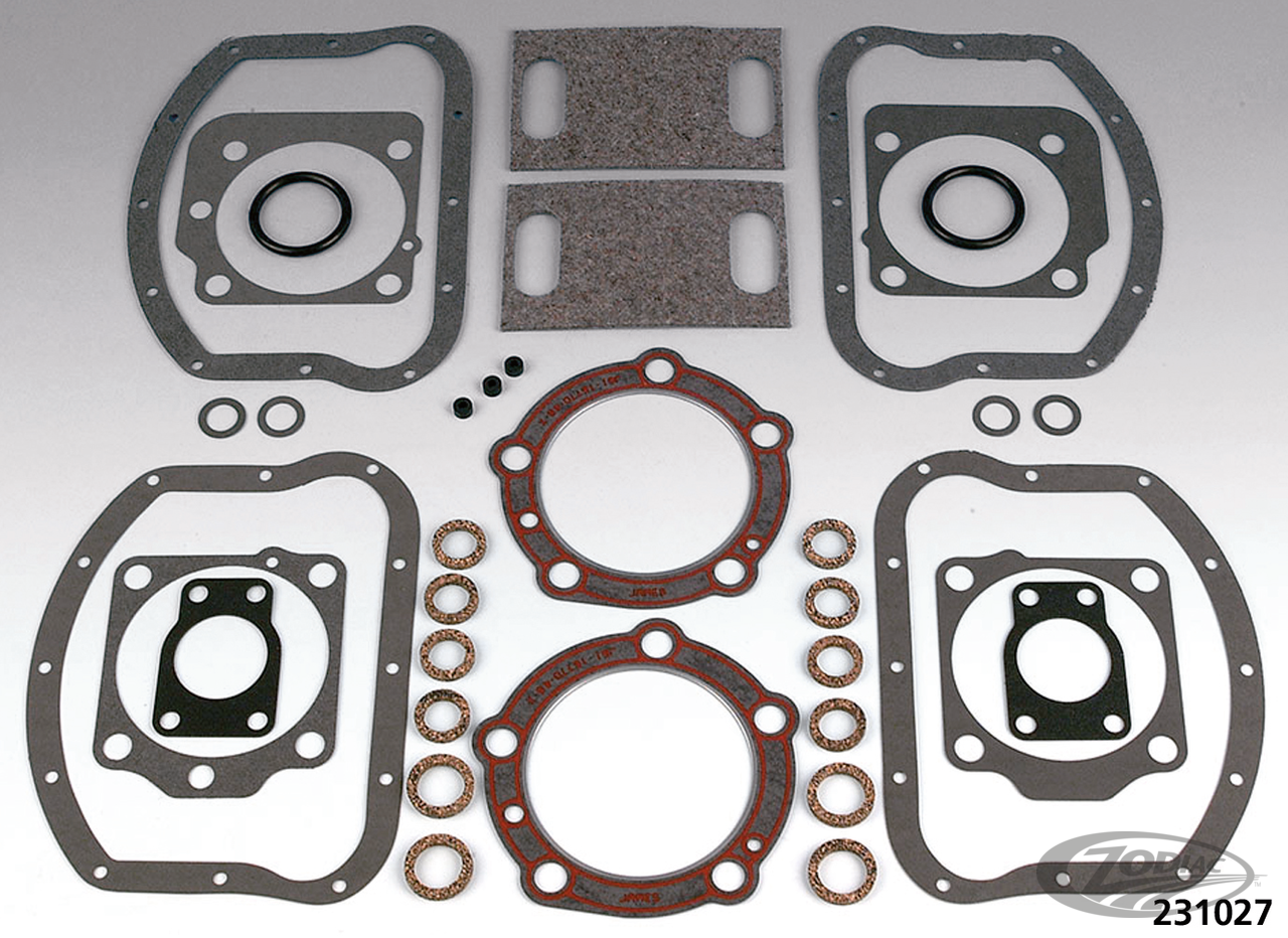 Spitzenqualitäts-Dichtungssätze von drei Herstellern. Von dem Amerikanischen Herstellern James und Cometic sowie vom europäischen Dichtungshersteller Athena. Alle verwenden Spitzenmaterial zur Herstellung ihrer Produkte, jeder einzelne fügt jedoch noch die eine oder andere Spezialität in der Fertigung seinem Produkt hinzu. Jeder dieser Sätze entspricht und übertrifft sogar den Herstellervorgaben. Zur Verfügung stehen: Komplettsätze, Motordichtring-Sätze und Stösselstangenrohr-Sätze für die meisten Modelle ab 1937. Alle Dichtungen, Dichtringe und O-Ringe werden auch einzeln an anderer Stelle in diesem Kapitel aufgeführt. Hinweis: Athena Dichtsätze beinhalten keine Ventilschaftdichtungen. Hinweis: Diese Dichtungen sind nicht für komplette S&S Motoren zu verwenden. Diese sind separat aufgelistet.