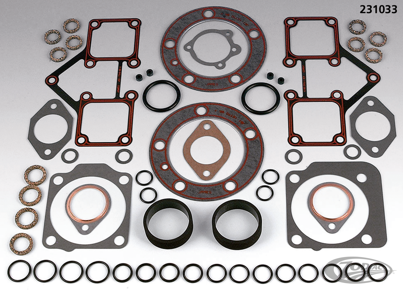 Spitzenqualitäts-Dichtungssätze von drei Herstellern. Von dem Amerikanischen Herstellern James und Cometic sowie vom europäischen Dichtungshersteller Athena. Alle verwenden Spitzenmaterial zur Herstellung ihrer Produkte, jeder einzelne fügt jedoch noch die eine oder andere Spezialität in der Fertigung seinem Produkt hinzu. Jeder dieser Sätze entspricht und übertrifft sogar den Herstellervorgaben. Zur Verfügung stehen: Komplettsätze, Motordichtring-Sätze und Stösselstangenrohr-Sätze für die meisten Modelle ab 1937. Alle Dichtungen, Dichtringe und O-Ringe werden auch einzeln an anderer Stelle in diesem Kapitel aufgeführt. Hinweis: Athena Dichtsätze beinhalten keine Ventilschaftdichtungen. Hinweis: Diese Dichtungen sind nicht für komplette S&S Motoren zu verwenden. Diese sind separat aufgelistet.