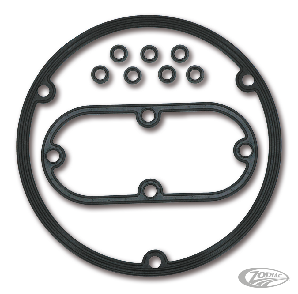 Alle Dichtungen aus diesem Kit bestehen aus solidem Metallkern der beidseitig mit druckstabilem NBR Gummi und zusätzlichem Silikonstreifen beschichtet ist. Diese Dichtungen dichten alle Kupplungsdeckel und Inspectioncover zuverlässig ab. Satz beinhaltet 1 Kupplungsdeckel-Dichtung, 1 Inspection Cover Dichtung sowie 7 Dichtscheiben für die Befestigungsschrauben.